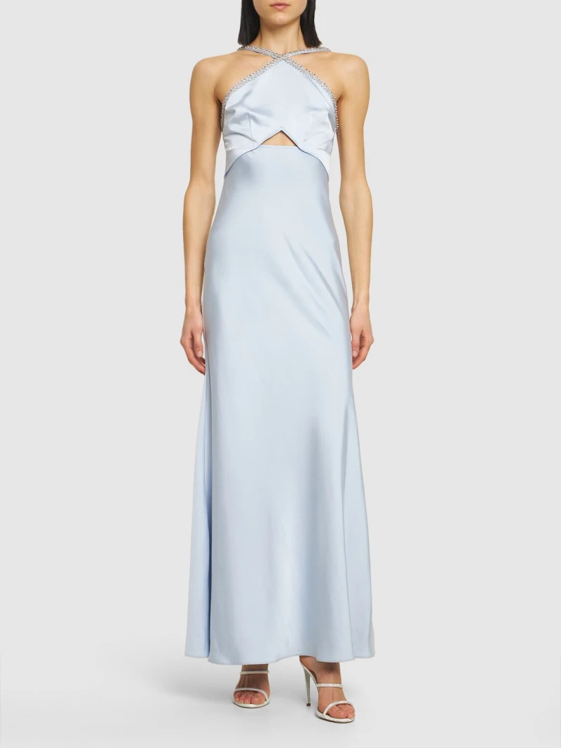 Embellished satin halter neck maxi dress