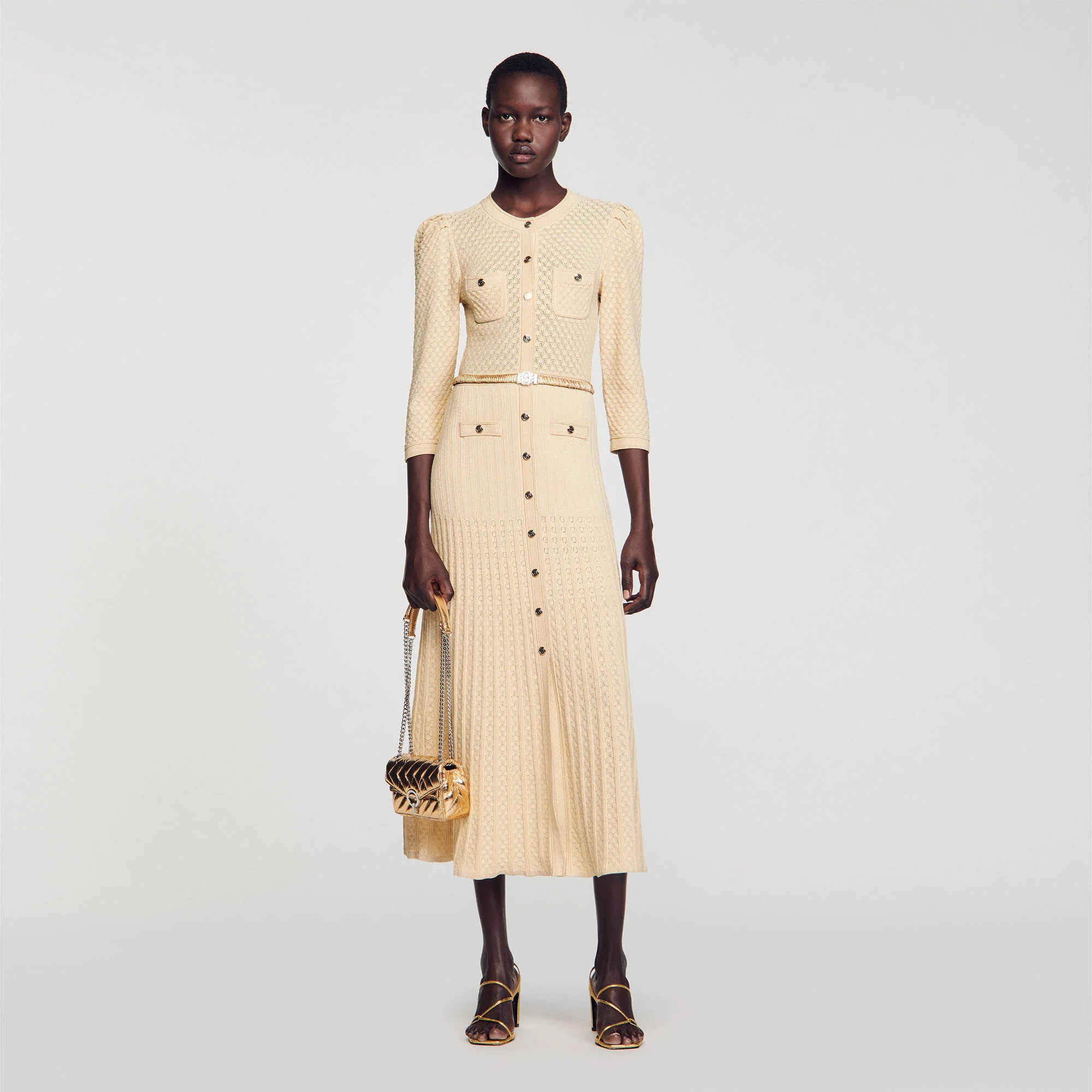 Pointelle knit midi dress